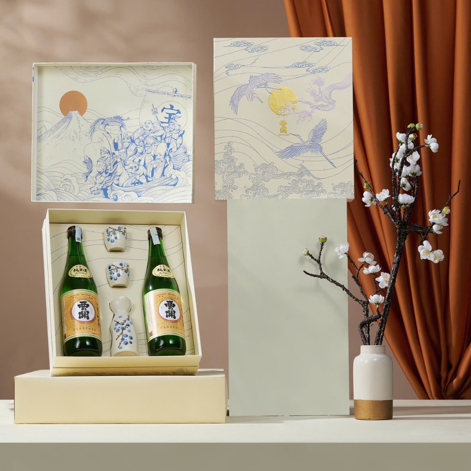 Hộp quà Vạn Phúc Nishinoseki Junmaishu là lựa chọn hoàn hảo để trao gửi lời chúc tốt đẹp dịp năm mới, kết hợp tinh tế giữa văn hóa truyền thống Nhật Bản và vẻ đẹp hiện đại.