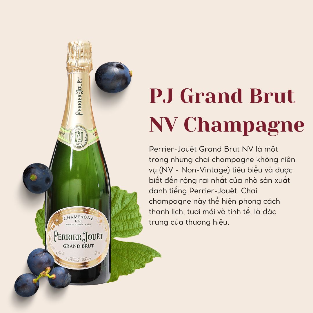 Perrier Jouët Grand Brut là dòng rượu sâm panh gắn liền với lịch sử lâu đời của nhà Perrier-Jouët. Từ năm 1846, họ đã cho ra đời chai Cuvée K loại rượu sâm panh đầu tiên trên thế giới có vị nhẹ, ít đường. Thời đó, đây là điều rất mới mẻ, bởi rượu thường được làm ngọt khá nhiều. Họ tin rằng nho ngon thì không cần phải cho nhiều đường, và đến hôm nay, triết lý ấy vẫn được gìn giữ.