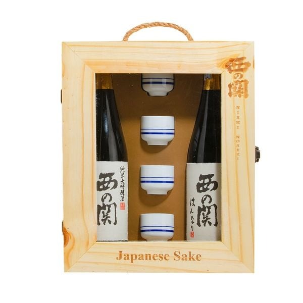Hộp quà gỗ rượu sake gồm: