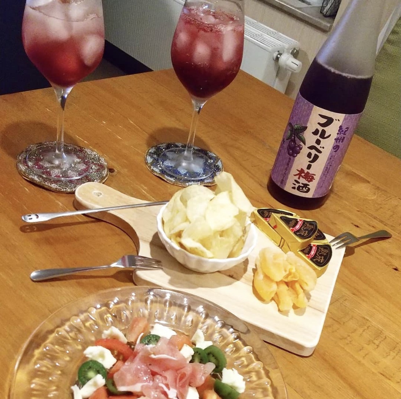 Rượu mơ Kishu No Blueberry Umeshu ăn kèm salad
