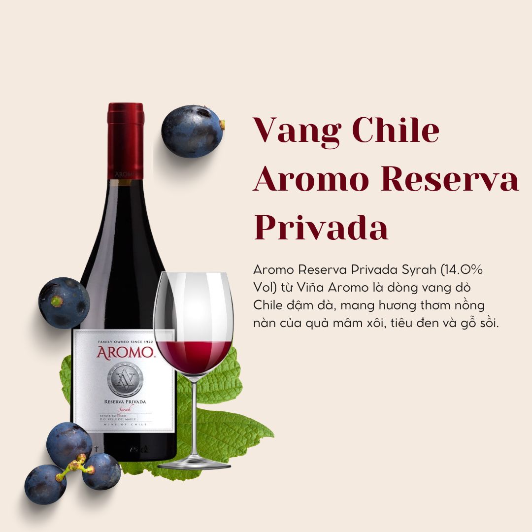 Rượu vang Chile Aromo Reserva Privada - Syrah ở phân khúc giá dưới 500.000 đ cho bạn dễ lựa chọn. Bạn cũng có thể sở hữu một chai vang Chile chính hãng được nhập khẩu nguyên chai, giá rẻ và bảo đảm chất lượng cũng như mùi vị.